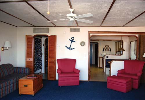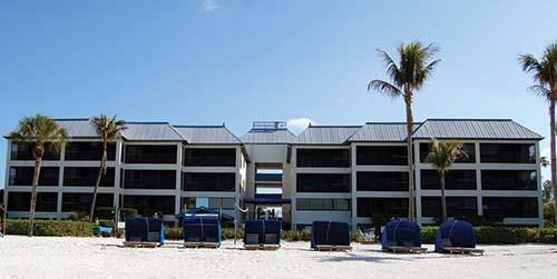 Located directly on a lagoon beach on Estero Island, with a spectacular view of the Gulf of Mexico, Mariner's Boathouse features nautically themed units with a floor plan that results in each unit resembling a ship's cabin. The one-bedroom suites sleep six in one fully enclosed bedroom, a convertible sleeping area for two, and two berths (built-in bunk beds) in the main salon. All units have an enclosed lanai overlooking the Gulf. Amenities include a pool, spa, beach, and full-time activities program. On-Site