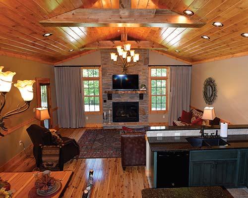 Trophy Run is an all-season resort community nestled amid 42 wooded acres (17 hectares) on the bank of Lake Taneycomo in Branson, Missouri. With a range of one to four bedrooms, the upscale, Adirondack-style cabins are perfect for a quiet getaway or large family reunion. Trophy Run is a relaxing, secluded oasis, yet is just minutes from exciting entertainment and attractions. The natural beauty of the Ozarks, 10 miles (16 kilometers) of groomed hiking trails, world-class fishing, boating, shopping, and more make this a great vacation retreat. On-Site